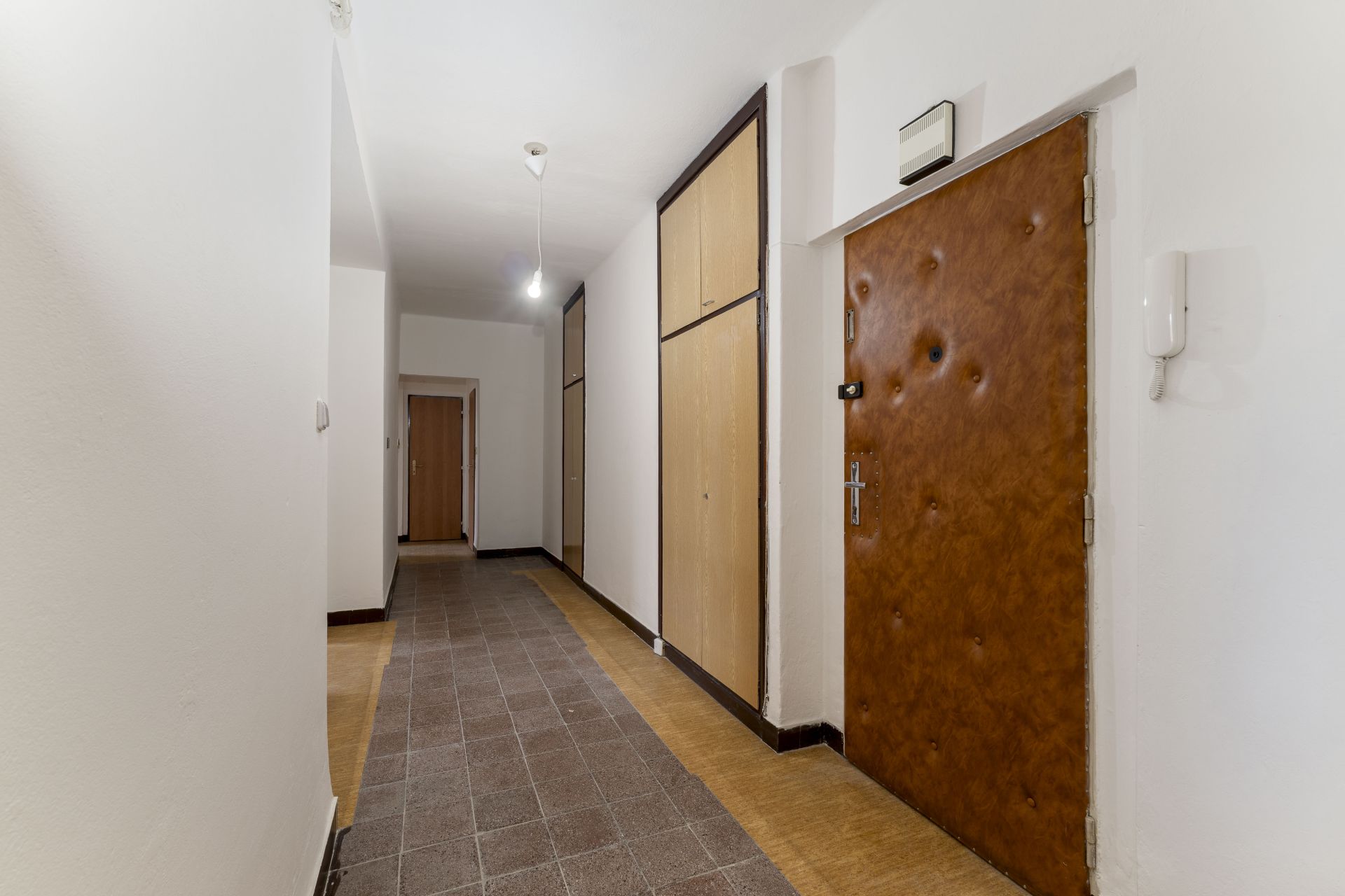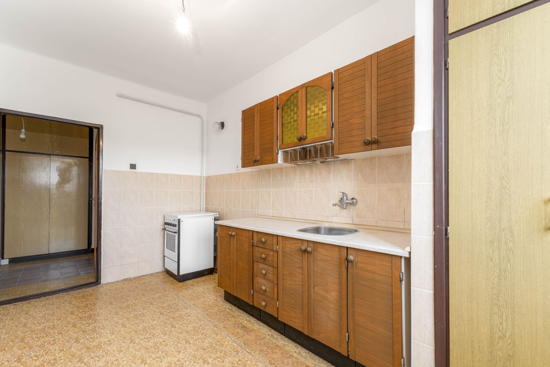 Byt má velmi praktickou dispozici – prostorná chodba, neprůchozí pokoje (obývací pokoj, ložnice a například dětský pokoj), samostatnou kuchyň a praktickou komorou. Byt je v původním, udržovaném stavu, takže si jej můžete zrekonstruovat podle vlastních představ.
