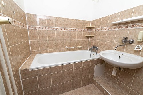 Koupelna a wc odděleně. Velkou výhodou u cihlové zástavby je vyzděné jádro, které výrazně snižuje náklady na rekonstrukci.
