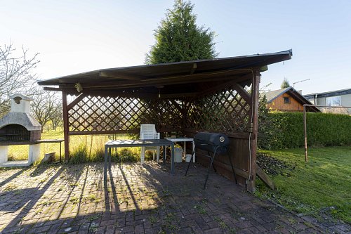 Pozemek kolem domu má výměru 633 m². Najdete na něm dvojgaráž o zastavěné ploše 54 m², pergolu ideální pro klidné posezení a grilování, a také skleník, který potěší každého vášnivého zahrádkáře.
