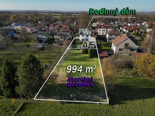 Za domem se nachází pozemek o výměře 994 m² vedený podle územního plánu jako stavební parcela. Hlavní využití je určeno k výstavbě rodinných domů, zastavitelnost do 40 %. Pozemek je rovinatý, dobře přístupný a poskytuje dostatek místa pro rodinu, podnikání nebo volný čas.